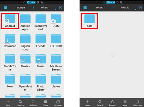 • Depois de iniciar o aplicativo, vá para Armazenamento interno do dispositivo> Android> Dados