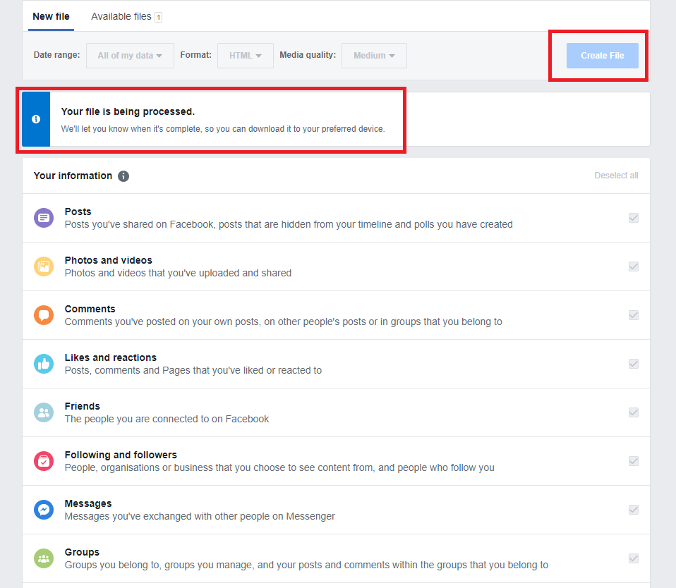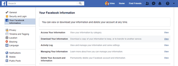 Bem, o Facebook permite que os usuários baixem uma cópia das informações do Facebook, como e-mails, mensagens, seguidores, bate-papos, amigos e outros. Siga as etapas abaixo para obter dados do Facebook: