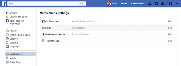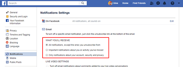 Método 6: Certifique-se de configurar a notificação de e-mail para recuperar mensagens do Facebook